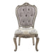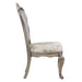 Introducing our Ariadne side chairs that are sure to captivate you with their intricate scrollwork and luxurious antique platinum finish. These stunning dining chairs have beautifully crafted scroll legs that make a grand statement on their own. Adorned with a subtle crown on the top of the frame and finished with crystal-like buttons on the backrest for visual appeal. The foam seat cushion creates the perfect set for your dinner guests to enjoy a nice meal.