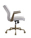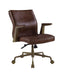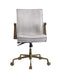 This chair screams CEO, command respect with the Attica executive office chair. The chair is upholstered using high-quality top grain leather. The swivel seat and pneumatic 3-inch lift add practicality to the list. The seat is securely mounted on a metal 5-star base with casters for smooth movement and durability. There is no shortage of quality when it comes to the Attica executive office chair. Available in two colors, espresso, and vintage white.