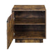 Whether you are relaxing or socializing, it is necessary to make your living room feel cozy and welcoming. The Bellarosa end table features a wooden case-frame in a rustic oak finish, bringing farmhouse style with its warmth and simplicity. Behind the hinged barn door, two storage compartments are revealed, which are perfect for books, magazines, and other things. The surface features lots of room for a vase of fresh flowers and a lamp.
