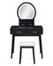 Create a chic and functional centerpiece for your bedroom or dressing area with this elegant vanity set. The sleek finish exudes modern sophistication, while the accented handles add a touch of luxury. The built-in LED-lit mirror provides optimal lighting for flawless makeup application or grooming, creating a glamorous and practical space. With spacious drawers and an upper shelf, it offers ample storage to keep your beauty essentials organized and within easy reach. The matching cushioned stool ensures comfort and style, perfectly complementing the overall design. This set combines functionality with aesthetic appeal, making it the ultimate addition to any stylish home.