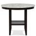 Glam up your dining space with the Celeste 42" Round Counter Table. Crafted for lasting durability, this counter table features solid Rubberwood legs and robust manufactured wood components. The heat and water-resistant faux marble top, finished with a glossy coat, not only enhances its contemporary glamour but also ensures effortless cleaning and protection from daily wear. The sleek combination of a white surface with gray veining against deep espresso legs creates a modern ambiance for your space. Invest in this quality-built, heat, and water-resistant counter table to seamlessly blend style and practicality in your home.