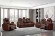 The Chester Reclining Sofa Set is designed to enhance your living space with its blend of comfort and functionality. This set includes one sofa and one loveseat, both built with quality construction using hardwood and plywood interior frames and sturdy motion mechanisms, supporting up to 350 pounds per seat. Featuring a modern style with clean lines and a rich color, this loveseat offers a contemporary appeal. The supportive seating combines springs with plush foam, ensuring optimal comfort and durability while maintaining the sofa''s shape over time. The soft, supple PU synthetic leather fabric is easy to maintain and resistant to stains and scratches. Enjoy ultimate comfort with the luxurious recliners, providing plush cushioning and an ergonomic design, perfect for living rooms and home theaters. Additional lifestyle features include silver cupholders in the armrests, a center console in the loveseat for storing remotes or books, and a back center cushion in the sofa that drops down to reveal a snack tray, built-in drink holders, reading lamps, power outlets, and a USB charger. Choose the Chester Couch and Loveseat set for its thoughtful design and practical features, making it an unparalleled choice for your home.