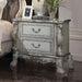 The Dresden Nightstand offers beautiful craftsmanship and artistic carvings. It features solid hardwood with two drawers for storage with coordinating carvings. The drawers feature dove tail construction and are decorated with antique brass hardware.