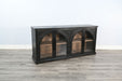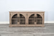 This sideboard blends clean-lined elegance with classic arch details. Its framed glass doors with arched molding create a distinctive display while allowing visibility to stored items. A finish paired with light interior shelving adds a refined contrast, making this a standout piece for dining rooms, living spaces, or entryways.