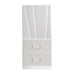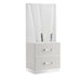 - Sleek, Modern Design: The sophisticated look is achieved with the gleaming white finish, mylar accents, and acrylic drawer pulls.