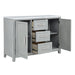 The Fiona Marble Top Dining Buffet blends timeless design with everyday function. Crafted from Acacia solids, manufactured woods, and oak veneer, it features a genuine white and gray marble top that’s both beautiful and practical for serving. A multi-step mist gray finish with wire brushing adds rich texture. Classic details like tapered legs and picture frame moldings pair with full-extension, velvet-lined drawers, dovetail joinery, and a removable silverware caddy for added convenience.