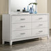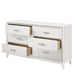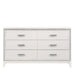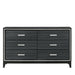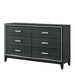 Classic design with touches of modern aspects makes this Haiden Dresser ideal for any bedroom. The piece offers a rectangular tabletop and six storage drawers for displaying or organizing. It also features a glamorous shimmering silver accent trim that adds richness to design. The drawer handles with the same shimmering silver tie them all together to create a cohesive look. The finish makes it easy to fit into already existing decor.