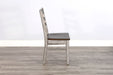 This stylish side chair combines a cottage chic aesthetic with washed-out farmhouse flair. Constructed of mahogany wood with a two-tone finish to highlight the beautiful wood grain. It has a ladder back and a basic box seat. Four square legs complete the design, while structural stretchers offer further stability.
