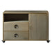 Switch up your style in the storage space in your office area with the clean-lined Jennavieve cabinet, a perfect addition for achieving a contemporary look. Whether you're storing random paperwork or important document, having an organized cabinet always makes the work easier. This beautiful cabinet features one open compartment with two drawers and one door. Offering caster wheels for easy mobility, this piece is perfect for any room Decor.