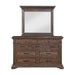 - Rich Walnut Finish: The heirloom finish is achieved through a multi-step process that includes mild distressing, wire brushing, and charcoal glazing that enhances the natural beauty of the wood.