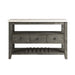 - Storage: 3 Drawers, 2 Open Compartments (2 Fixed Shelves: Bottom Shelf with Wine Bottle Holder)