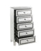 The Noor Cabinet will add a contemporary touch to any room in your home. With its clean lines and faux diamond inlay, this brilliant cabinet showcases a distinctive style for an intriguing look. The cabinet features five storage drawers with safety stop and self closure. This unique accent piece complements a wide range of decor and its modern design is a useful addition to any room decor.