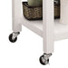 Our Ottawa kitchen cart covers your need for storage and more. This multifunctional kitchen cabinet is a freestanding island that features four wheels for legs, each with a locking feature so it doesn't slip away while you are chopping fresh herbs and veggies. A towel bar, cabinet with concealed shelf, wine rack shelf, and two open shelves provide plentiful space for cookware, non-perishables, and sundries. The frame is made with white finish, and topping this is a beautiful black countertop. Some Assembly Required.