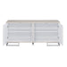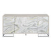 Bring a luxurious, modern look to your home with this Panos console cabinet that adds glam style to your entryway or dining room. It is finished in a white neutral hue that looks just right with its clean lines and faux marble door fronts. This sideboard has plenty of storage; two sets of trouble doors open to plenty of space to store everything from cloth napkins to your family's favorite cookbook. Plus, there's room on top for serving dishes or displaying decor items.