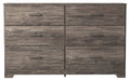 With its clean-lined look and modern attitude, this dresser is a fresh style awakening. A warm gray hue over replicated oak grain easily complements other furniture finishes. Smooth drawer fronts with antiqued pewter-tone handles complete the aesthetic.