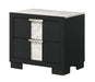 This bedroom set encapsulates modern minimalism, rendered in a soothing, natural wood finish that brings an organic, airy feel to any bedroom. The clean-lined bed boasts a broad headboard that stands as a subtle statement piece with integrated lighting. A streamlined dresser and tall chest offer ample storage, their clean facades interrupted only by the slender, discreet drawer pulls that underscore the set's sleek aesthetic. A matching nightstand completes the set, providing the perfect perch for a lamp and nightly reads.