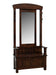 This Santa Fe hall tree was built with distressed mahogany solids and veneers, railroad spike hangers, storage under the seat and finish in a Dark Chocolate finish.