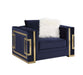 Virrux - Chair With 2 Pillows - Blue Velvet & Gold