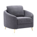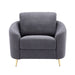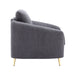 Slightly rounded and slopped armrests are used to create a modern silhouette on the Yuina chair. The softness of the gray linen upholstery counterbalances the gold metal legs for a clean stylish look, also making it easy to style with its neutral tones. Plush seat cushion makes for a lush seating experience for you and your guests. The pinewood inner frame is resilient and will last years of use.